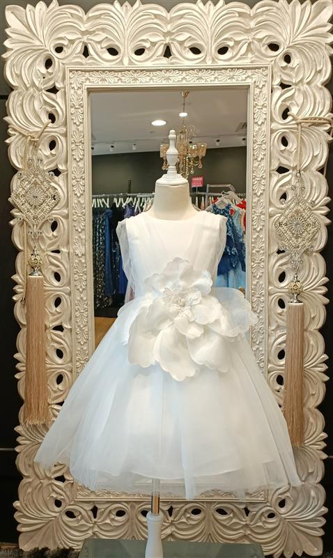 LAYLA BABY DRESS is a timeless and elegant piece, perfect for special occasions. Crafted from soft, breathable fabric, this white dress features a classic silhouette with a gently flared skirt for a charming, princess-like look. The standout detail is the beautiful oversized flower adorning the front, adding a touch of grace and sophistication. Designed for both comfort and style, this dress is ideal for birthdays, christenings, or any memorable event.
