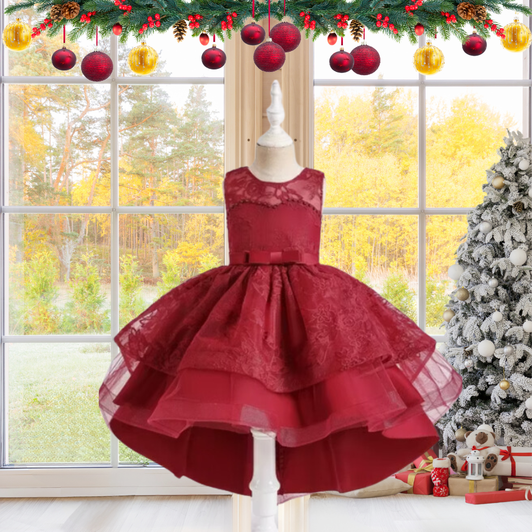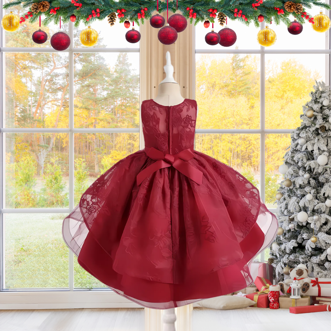 CHRISTMAS KIDS DRESS FLOWER EMBROIDERED TULLE GOWN