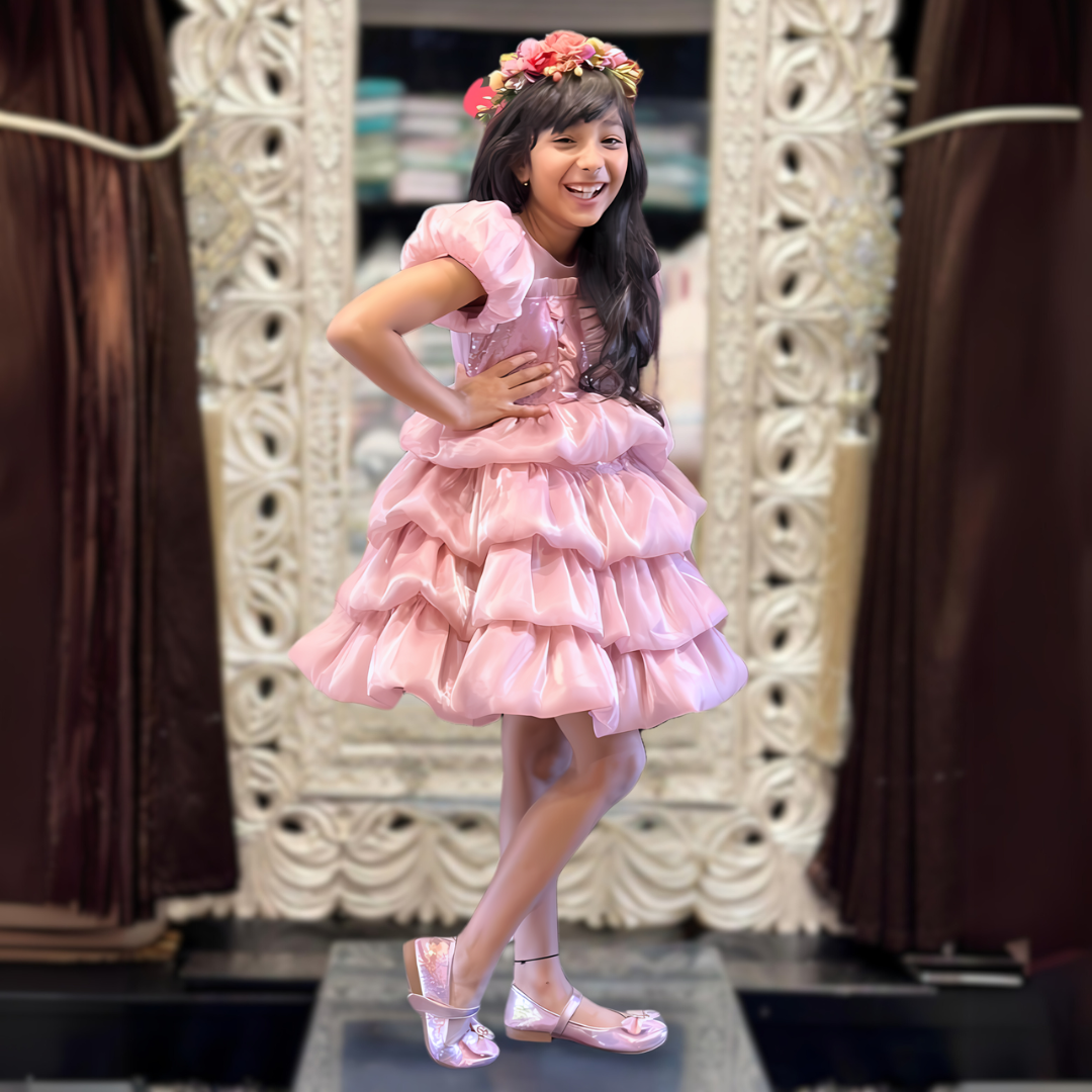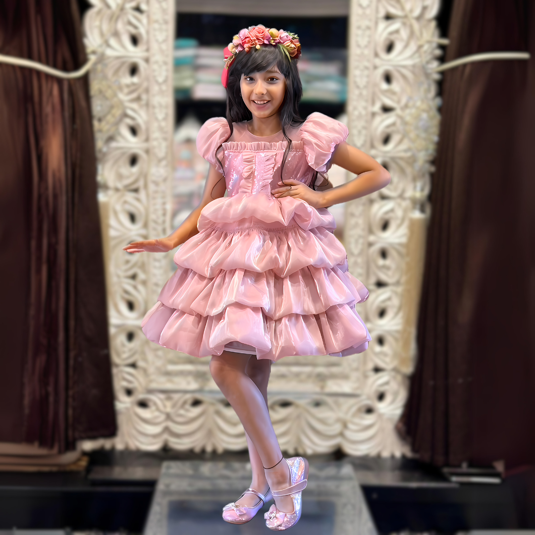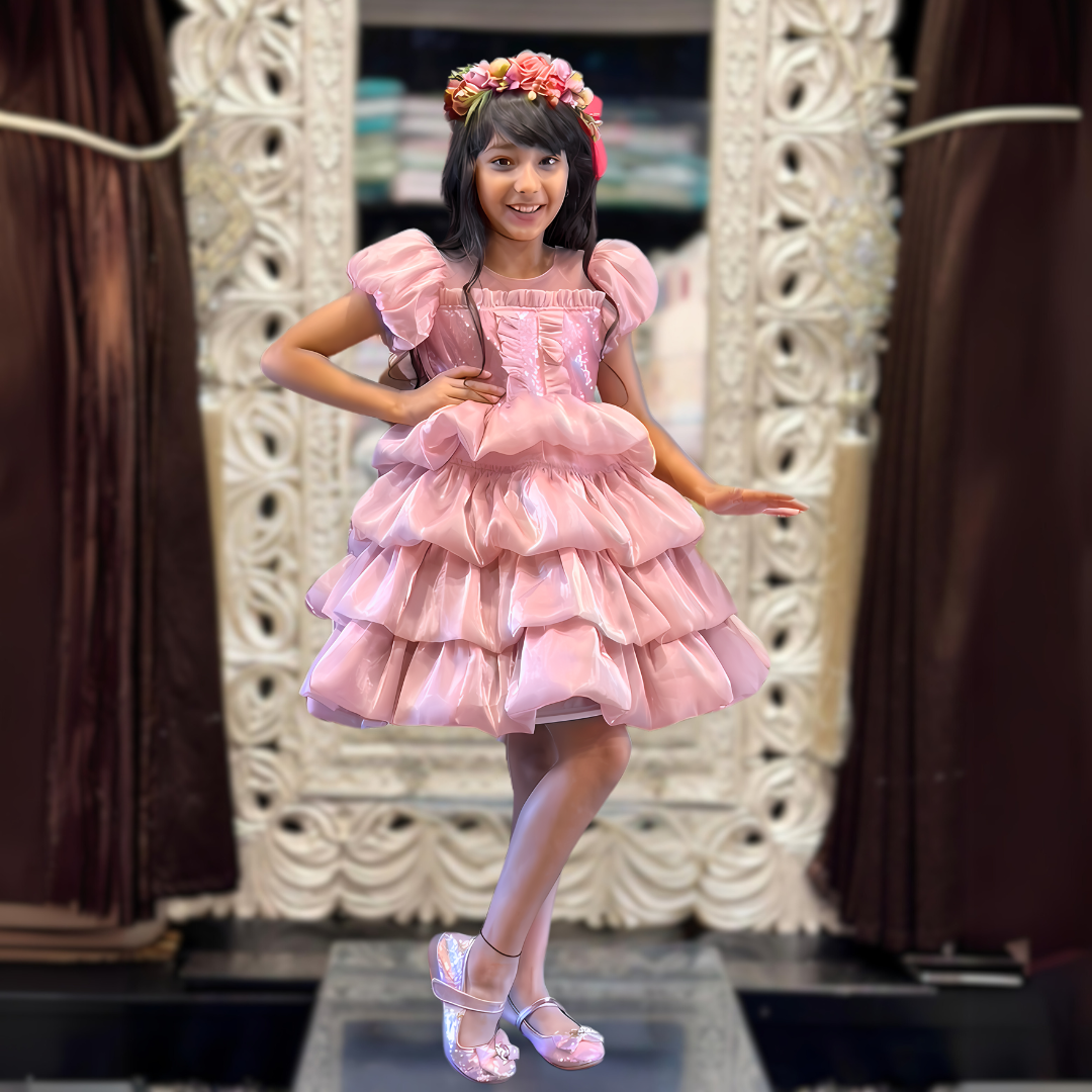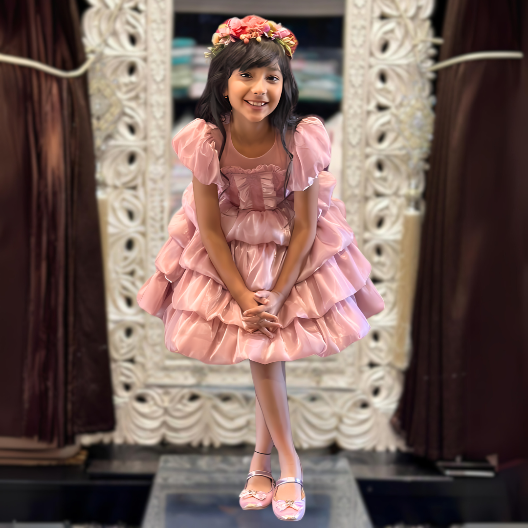 ROSY TIERED BUBBLE DRESS - DUSTY PINK